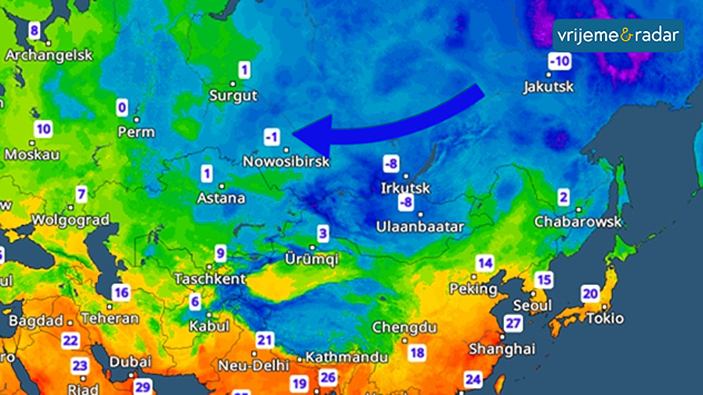 Kao što pokazuje temperaturni radar, mraz je već raširen u Sibiru.
