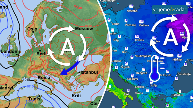 Pod djelovanjem anticiklone sa istoka Europe ostaje stabilno vrijeme uz dolazak sve hladnijeg zraka.