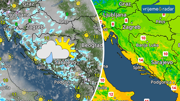 Vrijeme&Radar: Promjenljivo vrijeme ostaje. Temperature još iznad prosjeka.