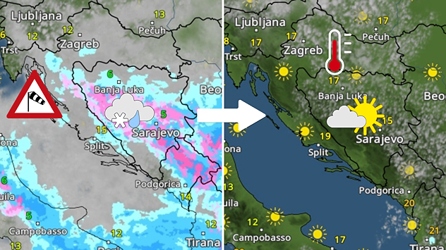Povremena kiša, snijeg u višim mjestima