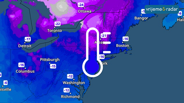 Ledeni polarni zrak i dalje dominira vremenom na istočnoj obali SAD-a. Nakon dvije snažne zimske oluje, najniže temperature u New Yorku u nedjelju je pala na oko minus 15 stupnjeva Celzija. Olujni vjetrovi će tamo učiniti još hladnije. Rizik od hipotermije i ozeblina je sukladno tome visok.