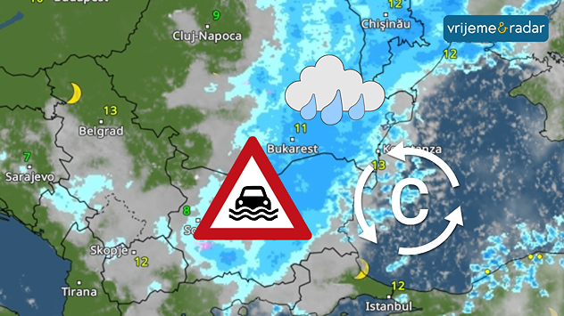 VrijemeRadar: Obilne kiše očekuju se u jugoistočnoj Europi danas i u četvrtak.