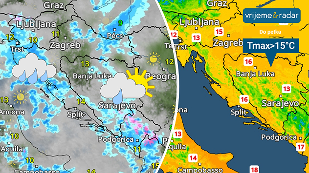 Vrijeme&Radar pokazuje za srijedu promjenljivije vrijeme na Jadranu, posebice sjevernom dijelu. Do petka temperature ponegdje preko 15°C