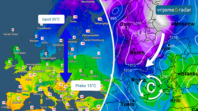 TemperaturniRadar prikazuje velike razlike temperatura na sjeveru Europe i kod nas. Za vikend stiže zahlađenje