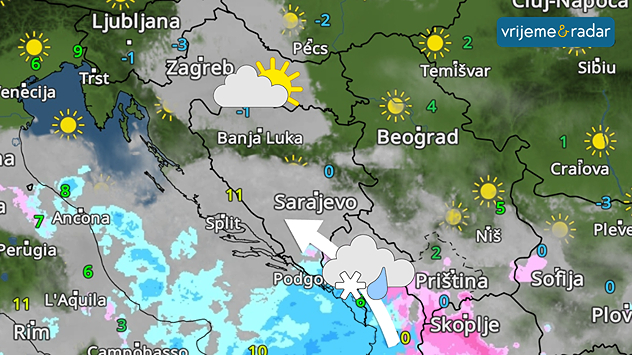 VremenskiRadar: u srijedu jače naoblačenje na jugu ponegdje oborine/padavine