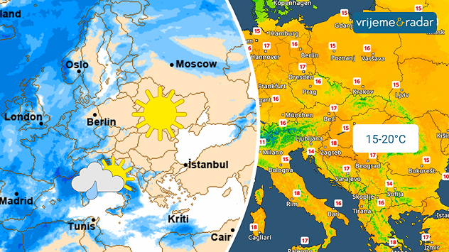 Anticiklona će još štititi neke predjele od kiše, osim one uz Jadran i planinama. Ostaju proljetne temperature