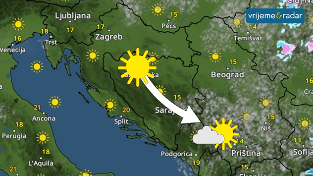 Vrijeme&Radar za utorak pokazuje razvedravanje, danju pretežno sunčano vrijeme