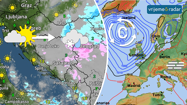 Promjenljivo oblačno ostaje u subotu, većinom suho, na jugoistoku i istoku još ponegdje mješovite i slabe padavine. Razvedravanje sa sjeverozapada krajem dana, na jugu pretežno sunčano. U nedjelju danju konačno sunčanije i toplije, ali po kotlinama uz jutarnju maglu. Najviša temperatura između 1°C i 7°C, na jugu 13°C, a u nedjelju 6-13°C, ovisno od zadržavanje magle. Jutro hladnije sutra, od -5°C do 1°C, jug topliji.