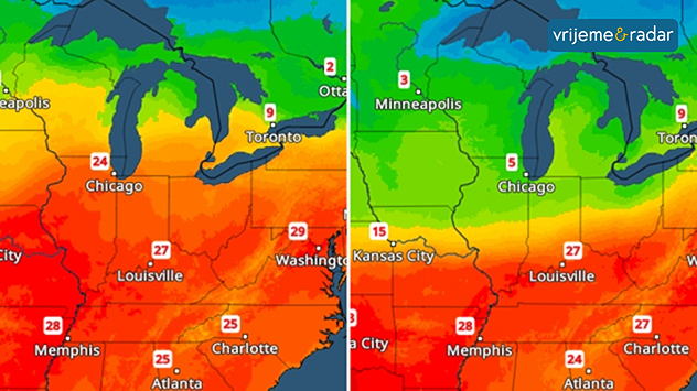 U dijelovima SAD-a nailazi se na nagli pad temperature. Danas se u Chicagu temperatura još uvijek kreće oko 25 stupnjeva, ali sutra će temperatura naglo pasti na oko 5 stupnjeva.