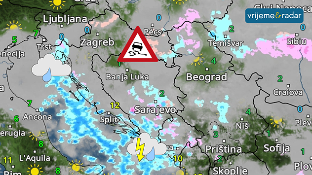 Promjenljivo-pretežno oblačno, uglavnom u Dalmaciji mjestimice s kišom, a mogući su i lokalni pljuskovi sa grmljavinom. U ranim prijepodnevnim satima i navečer u unutrašnjosti ponegdje slabe mješovite oborine, moguća i ledena kiša. Vjetar većinom slab, na Jadranu umjeren istočni i jugo, a na sjevernom dijelu i bura. Najviša temperatura na kopnu od -1 (na sjeveru) do 3°C, a na Jadranu uglavnom od 8 do 13°C.