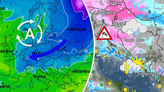 Kiša, ponegdje snijeg, Jadran vjetrovit
