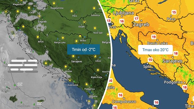 Kraj klimatološke zime, lokalno oko 20°C. Slično i u nedjelju?